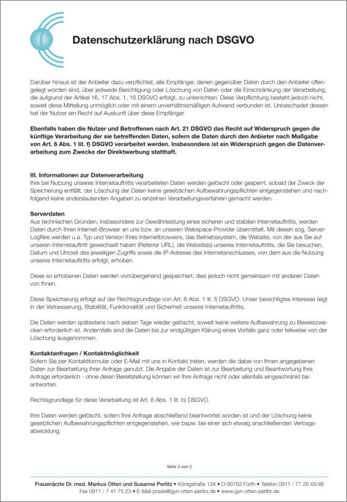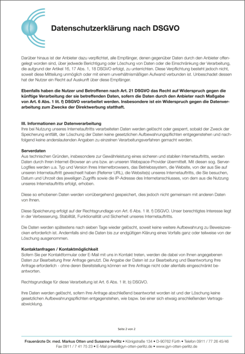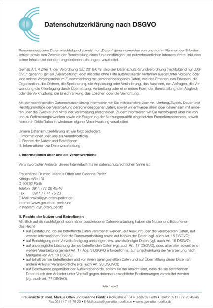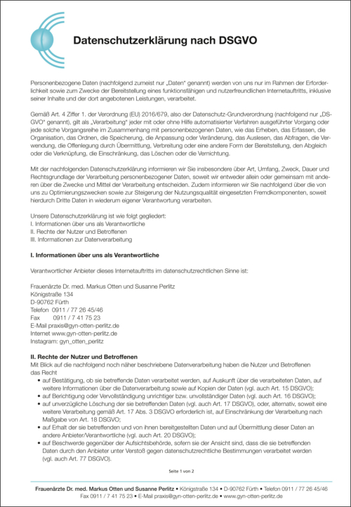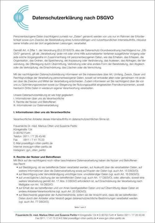 Facharztpraxis für Gynäkologie und Geburtshilfe . Königstraße 134 . 90762 Fürth . Telefon 0911.772645/46 . Fax 0911.7417523 . praxis@gyn-otten-perlitz.de